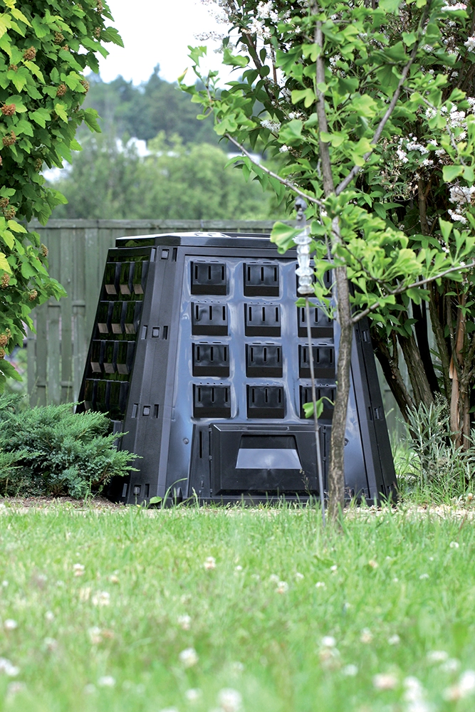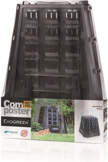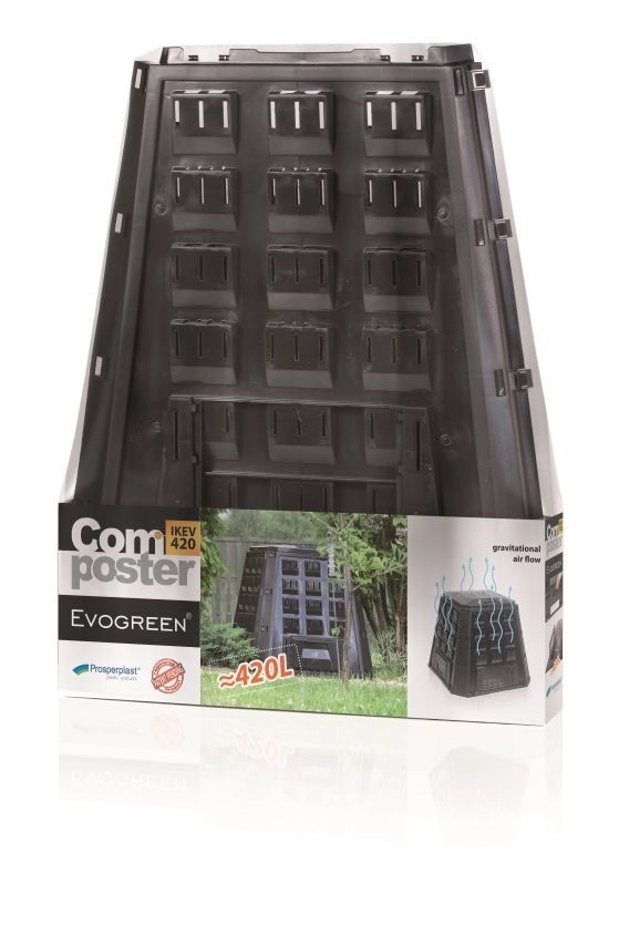 Kompostbeholderen Evogreen 420 l er det ideelle valg til enhver have. Den store kapacitet rummer græs, blade og køkkenrester og omdanner dem til næringsrig kompost. Den holdbare udførelse og gennemtænkte ventilationsåbninger sikrer optimal luftcirkulation, som fremmer effektiv nedbrydning af materialet.