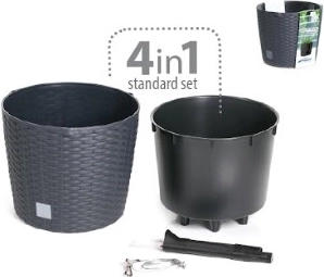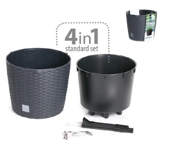 • Æstetik og funktion: rattanlook, farvestabilitet, sundere plantevækst takket være reservoir.