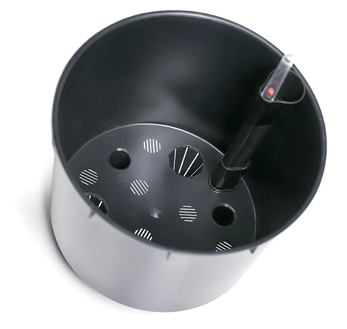 Den indre indsats med reservoir og vandstandsmåler sikrer jævn fugt og mindre hyppig vanding.