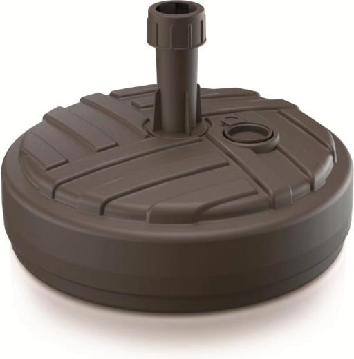 Leder du efter en pålidelig måde at forankre en parasol på terrassen eller i haven? Den runde parasolbase UMBRELLA i farven umbra kombinerer funktionalitet og æstetik. Når den fyldes med vand eller sand op til 10 l, tilbyder den fremragende stabilitet selv i mere blæsende vejr, mens den robuste plast tåler daglig udendørs brug.