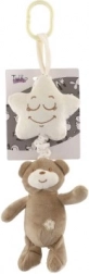 Denne søde ophængte legetøjsfigur kombinerer en bamse med en cremefarvet stjerne, indeni hvilken der er en spilledåse. Når du trækker i bamsen, spiller en behagelig vuggevise, som beroliger babyen og støtter rolig indsovning både hjemme og på farten.