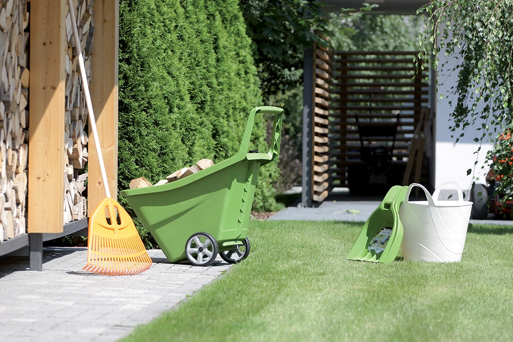 Havevognen LOAD & GO III med en volumen på 95 liter er et ideelt valg til daglige opgaver i haven. Den lette, men stabile konstruktion af slidstærk polypropylen sikrer lang levetid og modstandsdygtighed over for vejrpåvirkninger. To hjul og et ergonomisk håndtag gør det behageligt at føre vognen selv ved højere belastning.