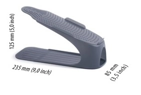 Skotøjsorganizeren i elegant antracit er en smart løsning til både skoskab og garderobeskab. Ved at placere skoene oven på hinanden får du et bedre overblik og sparer samtidig op til 50 % plads. Den skridsikre overflade holder skoene sikkert på plads, og den fleksible konstruktion egner sig også til højere modeller op til 12 cm.