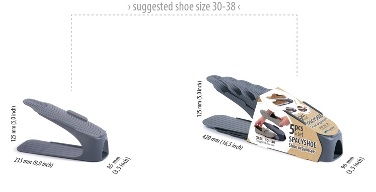 Disse holdbare organisere i plast er designet til daglig brug og hjælper dig med at holde skoene rene, overskuelige og lige ved hånden. Den skridsikre overflade holder sandaler, sneakers, loafers og højhælede sikkert på plads. Den fleksible konstruktion rummer fodtøj med en højde på op til 12 cm og gør både håndtering og vedligeholdelse nem.
