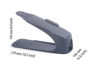Få styr på skoskabet og skab mere plads med Prosperplast Spacyshoe. Det holdbare plastmateriale i elegant antracit er nemt at holde rent, og takket være den gennemtænkte konstruktion sparer du op til halvdelen af pladsen på hylderne. Hver enhed rummer fodtøj op til 12 cm i højden og står sikkert takket være skridsikre elementer.