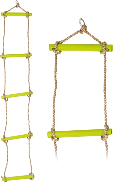 Installationen er nem, og takket være vejrbestandigheden er stigen ideel til langvarig udendørs brug. Med en bæreevne på 80 kg klarer den også intensiv daglig leg, og de kompakte mål 165 × 29 cm gør den velegnet til haven, legepladsen eller træhytten.