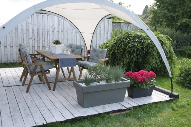 Rene linjer og den mørke nuance giver terrasse eller altan et tidløst look, der passer til træ, metal og beton.