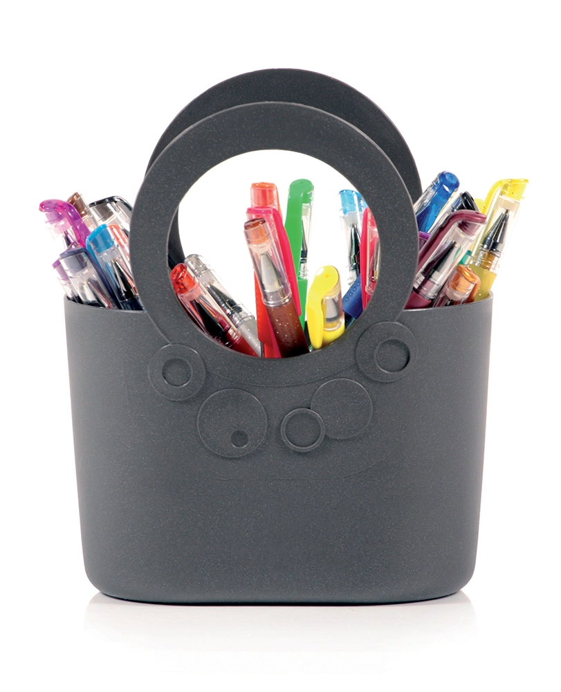 LILY-tasken begejstrer med et minimalistisk look med diskrete cirkulære ornamenter og en robust konstruktion. Den er lavet af fleksibel og holdbar plast, som klarer daglig belastning og samtidig er let at rengøre. Den brede åbning giver hurtig adgang til indholdet, og du bærer alt komfortabelt med de robuste, integrerede håndtag.
