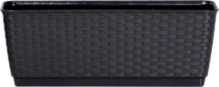 Elegant altankasse med underskål Ratolla P i længden 30 cm i antracitfarve er et stilfuldt tilbehør til både indendørs og udendørs brug. Den naturtro imitation af rattan-flet giver et luksuriøst udtryk, mens den integrerede underskål sikrer optimal afledning af overskydende vand for sund plantevækst. Det holdbare plast og den nemme vedligeholdelse gør den til et praktisk valg til altaner, terrasser og vindueskarme.