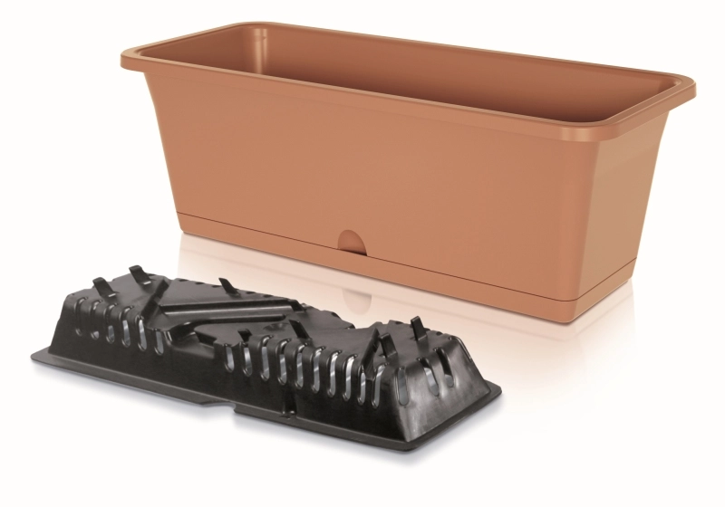 Praktisk og stilfuld altankasse CAMELIA i terrakottafarve er ideel til dyrkning af blomster, urter og mindre buske på altaner, terrasser og i haven. Den er fremstillet af kvalitets let plast, som er vejrbestandig og nem at rengøre. Med en kapacitet på 15,5 l giver den rigelig plads til sund vækst, og dens mål passer perfekt til vindueskarme og gelændere.