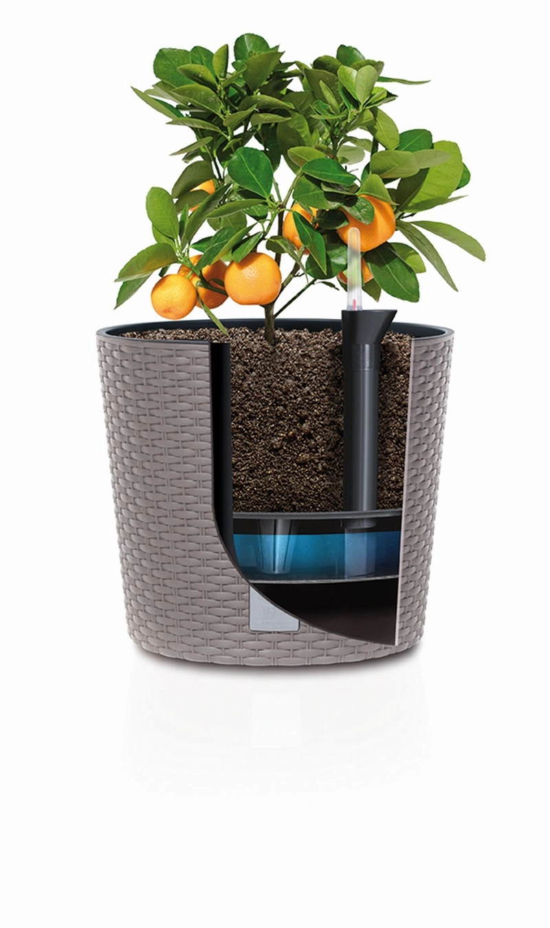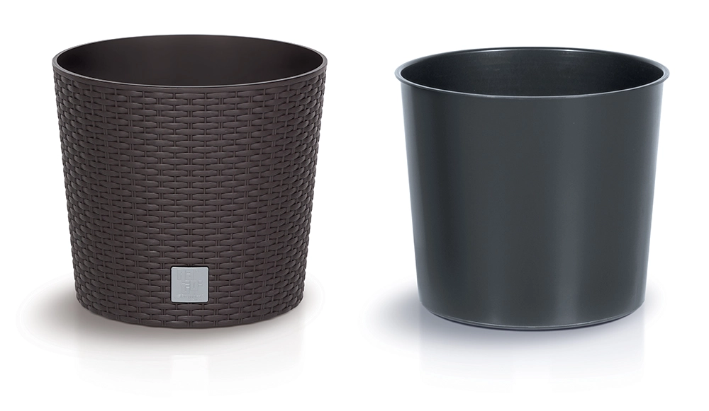Den teksturerede overflade med rattan-imitationsmønster giver dine planter et moderne, rent udtryk og passer til både udemøbler og interiør.