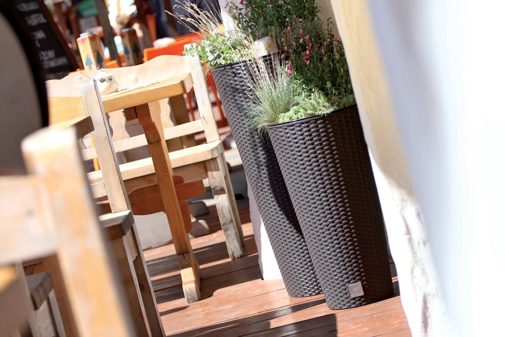 Urtepotteskjuleren Rato Tubus er det ideelle valg til terrasser, altaner og indgange. Dens formede, høje silhuet sparer plads og fremhæver prydgræsser, buske og blomstrende planter. Den rattanlignende tekstur giver et naturligt og samtidig moderne præg, som nemt passer til enhver stil.