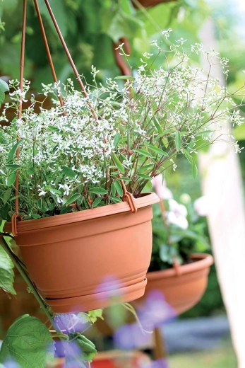 Der medfølger en aftagelig hængekrog, som muliggør en hurtig ændring fra hængende til klassisk stående urtepotte. Den let rengørlige overflade forenkler vedligeholdelsen og holder urtepotten som ny i lang tid.