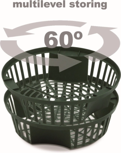 Praktisk løgbakke med en diameter på 21,5 cm i elegant skovgrøn, som gør det nemt at plante, tage op og opbevare tulipaner, påskeliljer og hyacinter. Den er fremstillet af holdbar plast, som er resistent over for UV-stråling og frost, så den kan klare krævende forhold. Nemt at grave ned og tage op igen uden at beskadige rødderne sparer tid og arbejde, mens den stabelbare konstruktion sparer plads ved opbevaring.