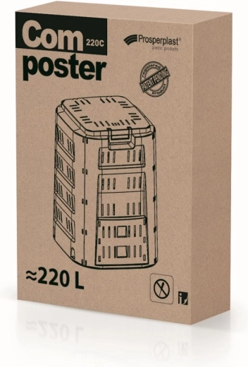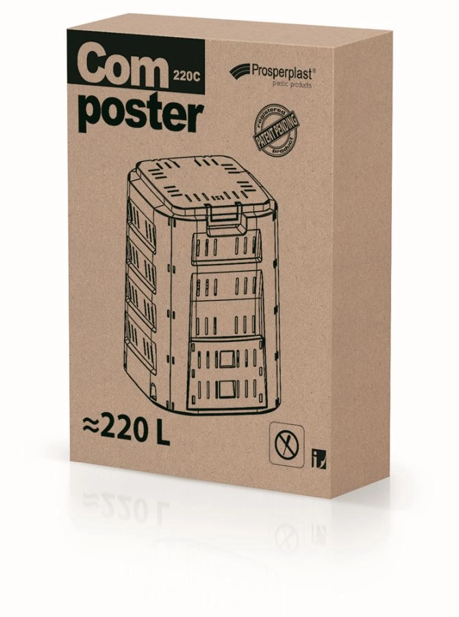 Monteringen foregår hurtigt og uden værktøj, og kompostbeholderen er fremstillet af holdbar plast, som kan bruges året rundt. Praktiske låger i den nederste del gør det nemt at tage den færdige kompost ud, mens ventilationsåbningerne sikrer optimal luftcirkulation for en sund komposteringsproces.