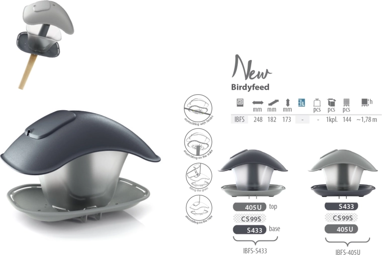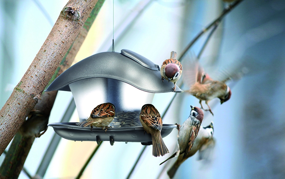 Det skrå tag i antracit skygger effektivt og beskytter foderet mod fugt, så det forbliver friskt og attraktivt for fuglene.