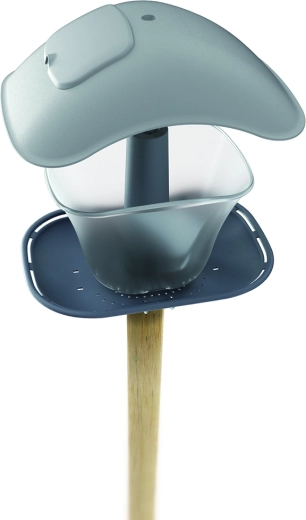 Takket være den gennemtænkte konstruktion hældes foderet let i og forbliver beskyttet under taget. Du kan tilpasse installationen til dine omgivelser – foderbrættet kan hænges på en gren, fastgøres til et gelænder med en rem eller monteres på en pæl for en stabil, fritstående løsning.