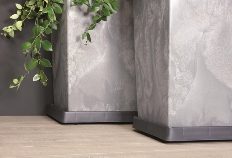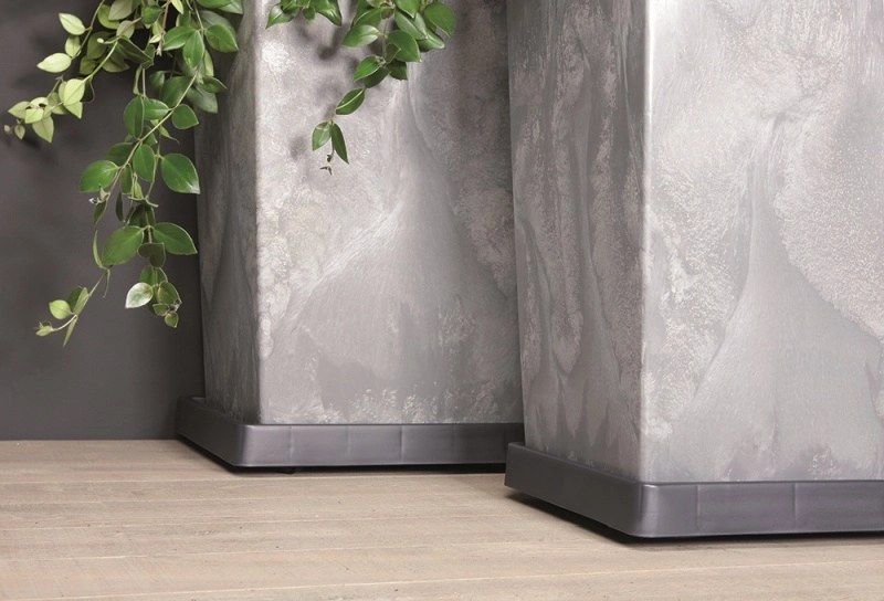 Med fire 360° drejelige hjul kan du uden besvær flytte selv tungere blomsterpotter. Den kvalitetsrige plast er vejrbestandig og giver lang holdbarhed.