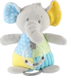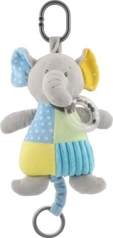 Giv dit barn glæde med en charmerende plys-elefant, hvis bløde og behagelige overflade er perfekt til at kramme. Ud over den beroligende melodi, der afspilles via optræksmekanismen, er legetøjet udstyret med en rangle med kugler, hvilket bidrager til udviklingen af høresansen.