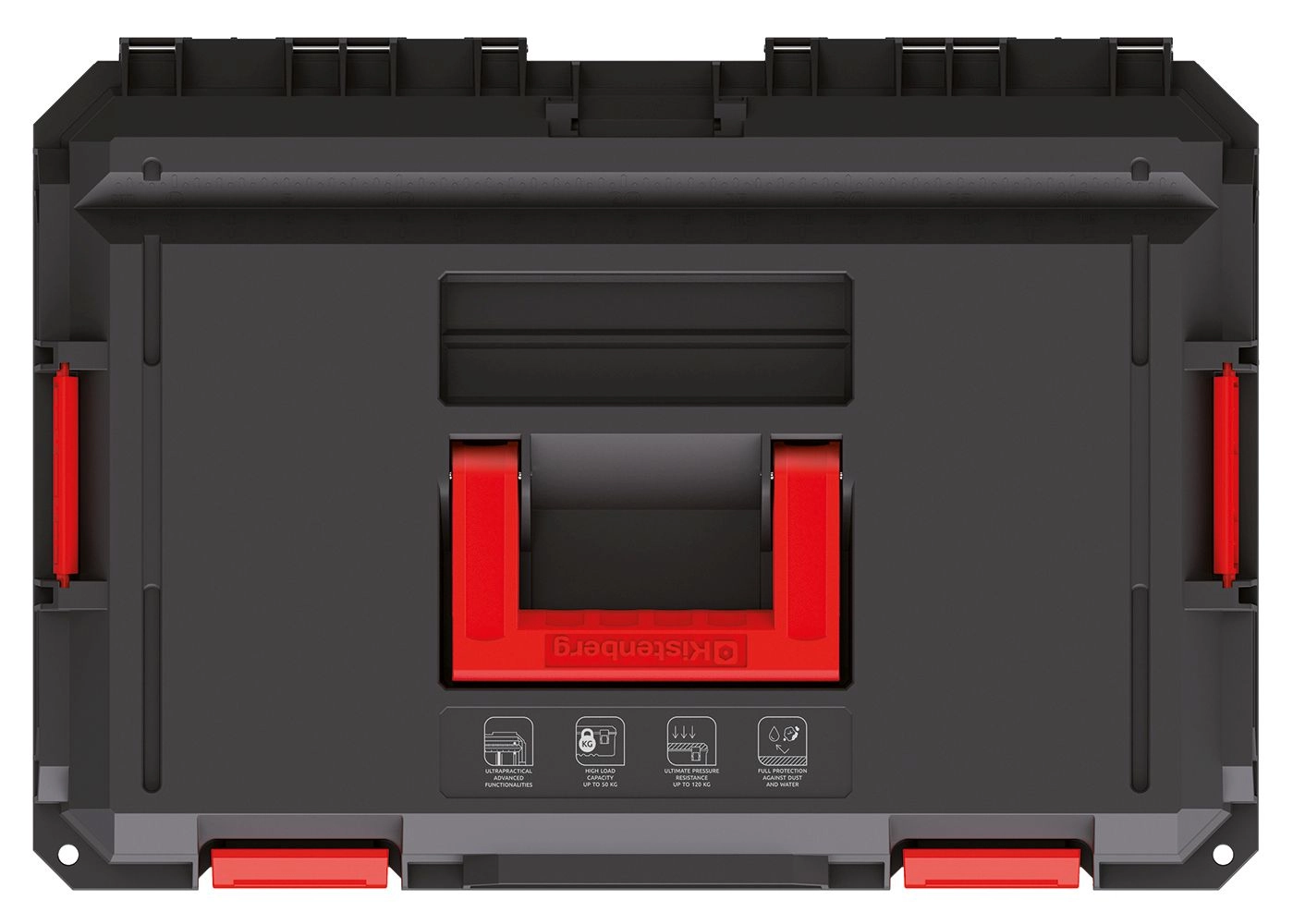 Takket være integreret tætning er kufferten beskyttet mod støv og vand, mens ribbede forstærkninger øger modstanden mod mekaniske skader. Udvalgte lågmodeller har aluminiumsskinner, der gør det muligt hurtigt at omdanne den til et kompakt arbejdsbord.
