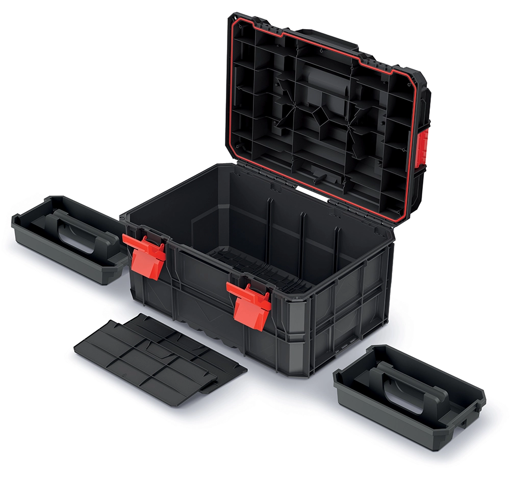 Værktøjskufferten X-Block Pro er designet til professionelle, der har brug for en pålidelig og robust løsning til transport og opbevaring af tungt værktøj. Den modulære konstruktion muliggør nem sammenkobling af flere bokse ved hjælp af sidelåse og skaber dermed et stabilt, bærbart system.