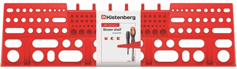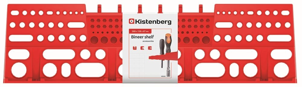Praktisk værktøjsholder til BINEER-paneler med mål 580 × 158 mm i rød farve, som hjælper med at holde dit værksted, din garage eller teknikrum perfekt organiseret. Den er fremstillet af slagfast plast, der sikrer lang levetid, og tilbyder hurtig og nem installation samt kompatibilitet med forskellige typer håndværktøj.