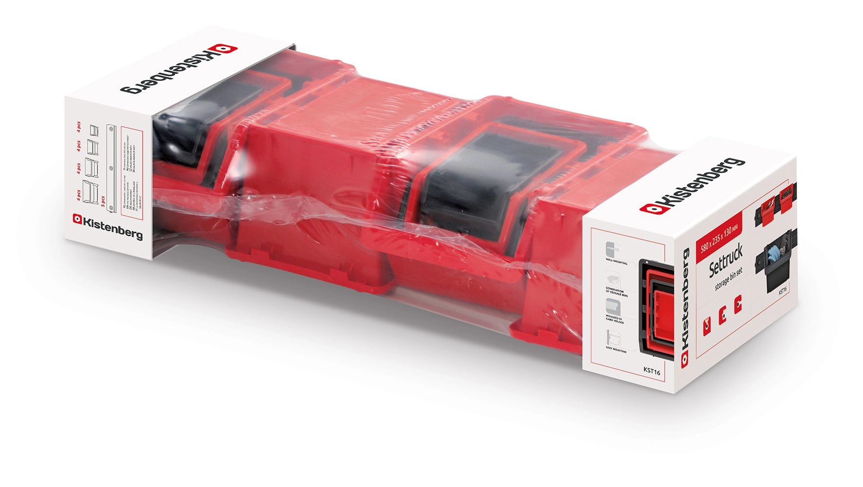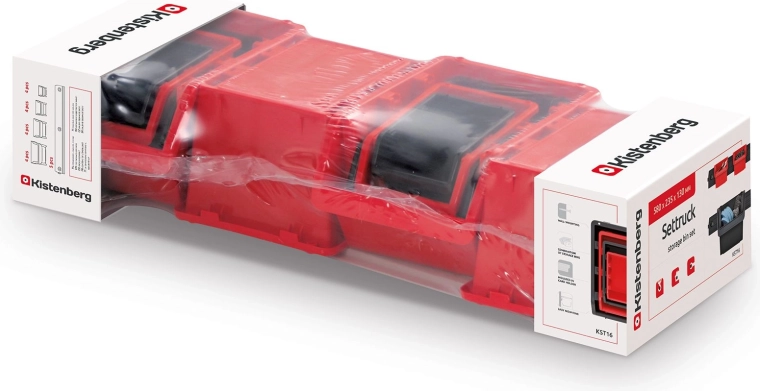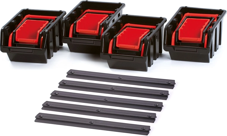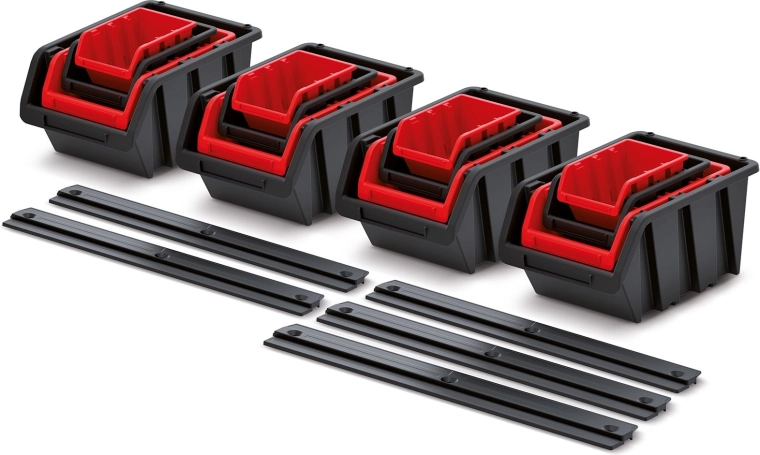Boksene er fremstillet af en robust polymerblanding, som bedre modstår stød og slitage. Farvekombinationen sort og rød hjælper med hurtig visuel adskillelse af indholdet. Sættet er perfekt til skruer, møtrikker, træskruer, søm og andre småting, hvilket øger arbejdstempoet og reducerer søgetiden.