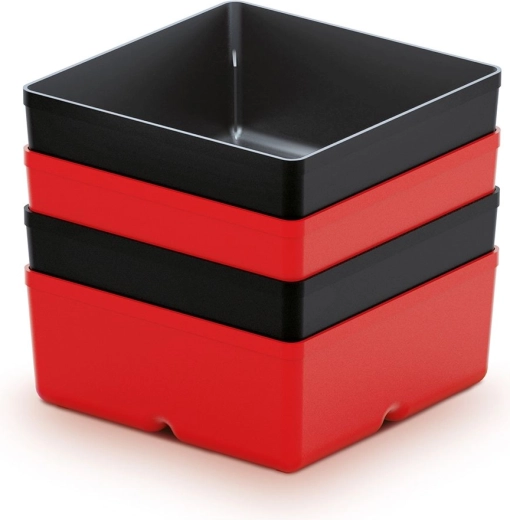 Sættet med 4 plastbokse UNITE BOX er ideelt til alle, der har brug for at have små befæstelser og tilbehør lige ved hånden. De kompakte mål på 110 × 110 × 112 mm for hver boks gør det let at placere dem på hylder, arbejdsbordet eller i et skab, mens den klare røde farve gør det nemt hurtigt at orientere sig.
