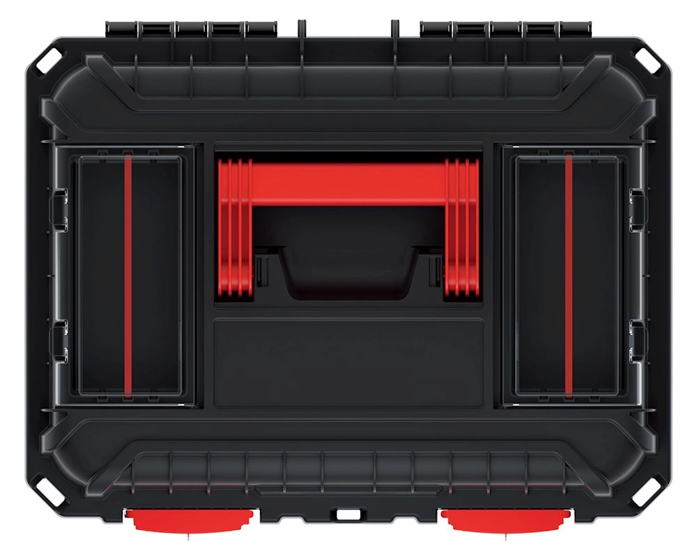 Målene 445 × 360 × 337 mm giver rigelig plads til et bredt udvalg af udstyr, mens de ydre rum hjælper med at holde orden. Et ideelt valg til værkstedet, montageopgaver og bilen, hvor du vil værdsætte holdbarhed og overskuelig organisering.