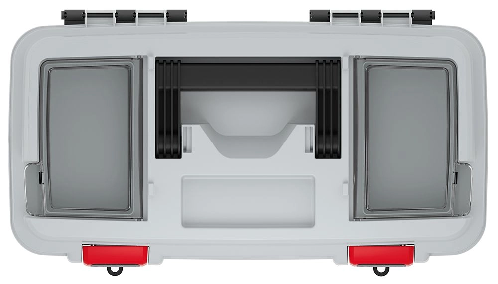 • Sikker lukning: et par robuste spænder holder låget sikkert på plads.
