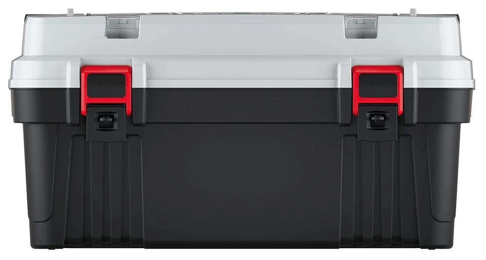 Kraftige frontlåse og forstærket låg holder værktøjet sikkert, selv ved hyppig transport på byggepladser og i værkstedet.