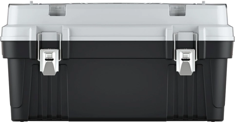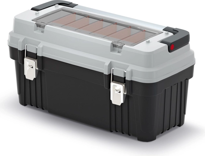 Den robuste OPTIMA værktøjskasse i grå er designet til sikker opbevaring, overskuelig organisering og komfortabel transport af værktøj. Takket være metalhåndtaget og de solide metallåse tåler den daglig brug i værkstedet, på byggepladsen og til hobbyprojekter.