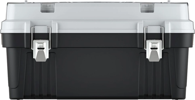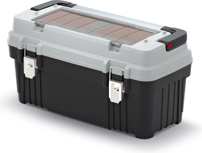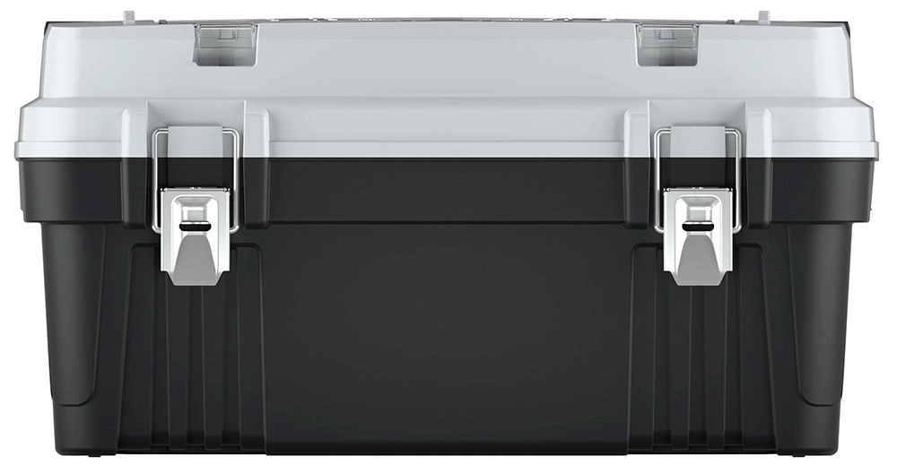 Det udvendige aflåselige rum med bokse gør arbejdet hurtigere – skruer, rawlplugs og befæstelsesmateriale er lige ved hånden. Metallåse sørger for sikker lukning, og metalhåndtaget giver et behageligt og sikkert greb selv ved højere belastning. Der medfølger også en udtagelig indsats for fleksibel indretning.