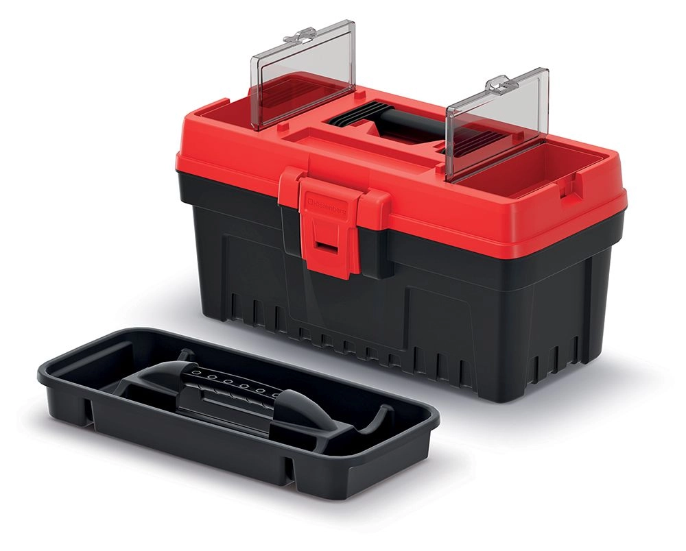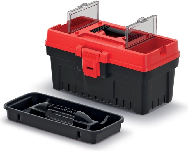 Praktisk EVO-værktøjskasse i kompakte mål 360 × 193 × 186 mm med robust konstruktion, aftagelig indsats for bedre organisering og låselige udvendige rum til smådele. Ideel til både gør-det-selv-folk og professionelle, der leder efter en holdbar og overskuelig opbevaring af værktøj.