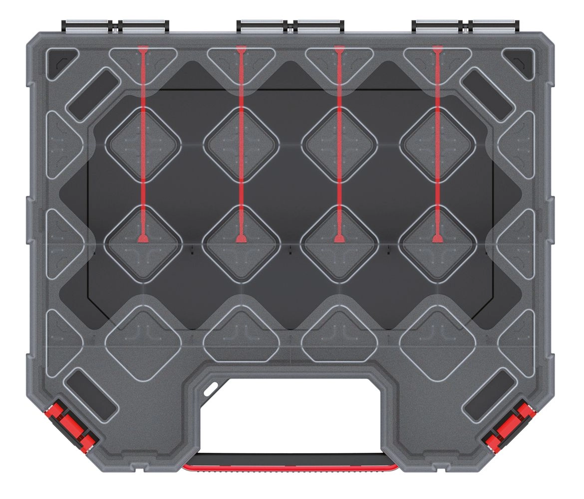 Hold styr på skruer, rawlplugs, søm og småt tilbehør. Denne alsidige organizer med skillevægge tilbyder en smart inddeling af indersiden og øjeblikkeligt overblik takket være det gennemsigtige PP-låg. Robuste lukninger hjælper med at holde alting på plads, også under transport.