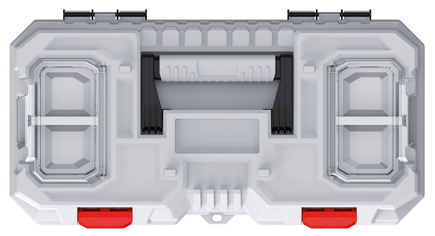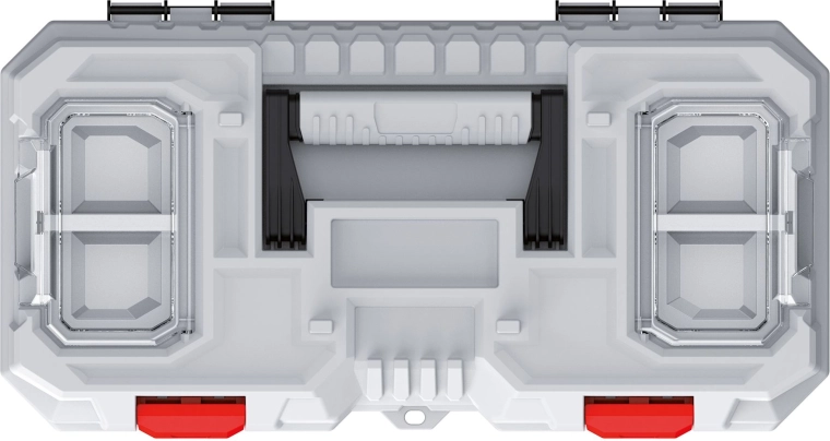 Takket være de solide plastlåse og den robuste konstruktion holder kassen sig sikkert lukket, også under transport. Integrerede rum og en overskuelig inddeling hjælper med at bevare orden og forkorte tiden til at finde det rette værktøj. Et praktisk, nedfældeligt håndtag gør transporten behagelig.