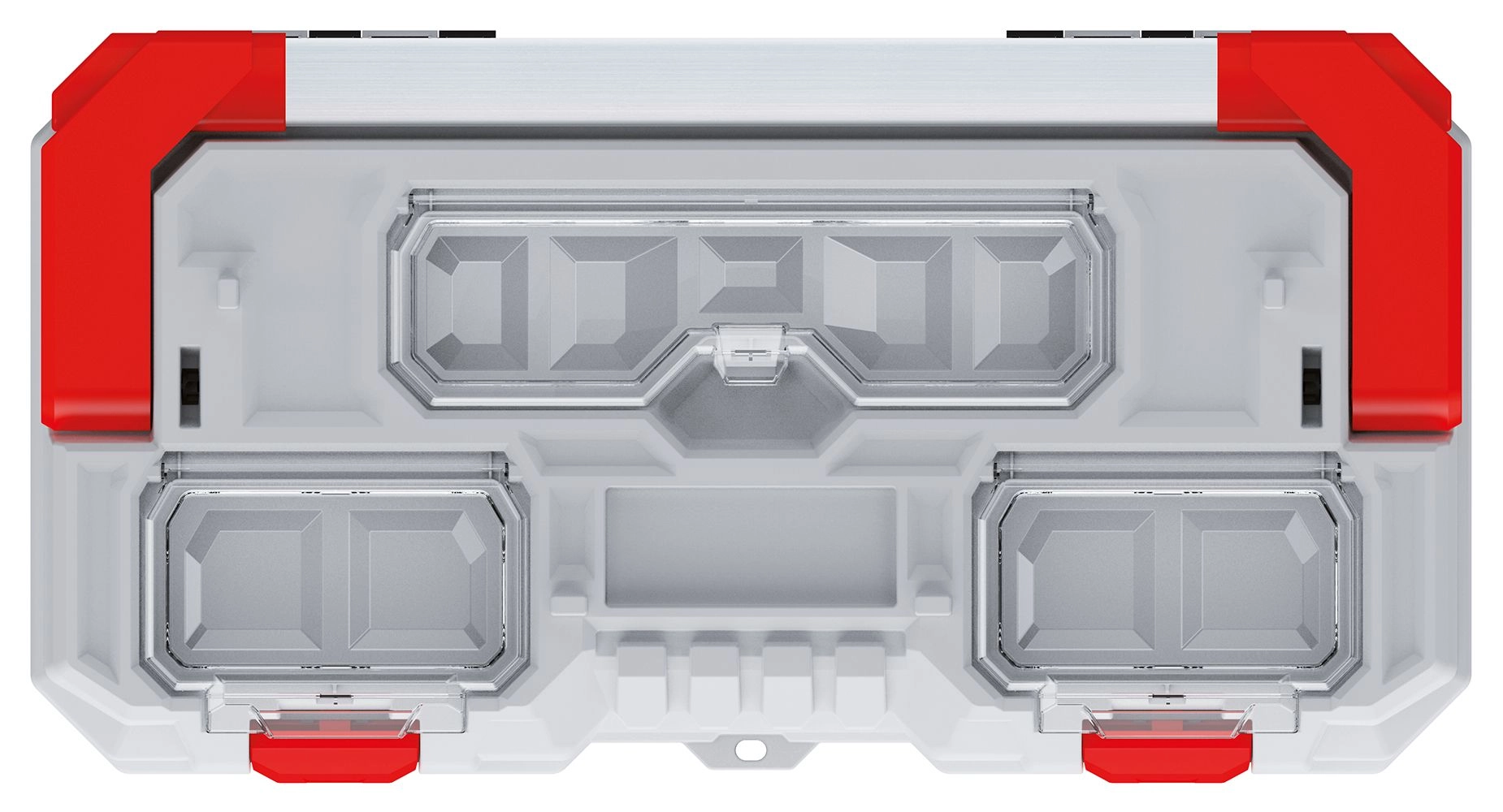 Transparente rum til småmateriale giver hurtig adgang uden at åbne hele kassen. Ideel til skruer, rawlplugs og bits.