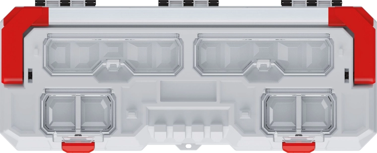 Takket være den udtagelige indsats-organizer kan du nemt adskille ofte brugte redskaber. De stærke røde låse holder indholdet sikkert lukket, og hjørneforstærkninger øger holdbarheden ved daglig brug i værkstedet, garagen og på byggepladsen.