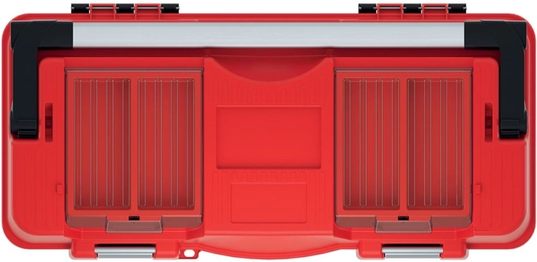Praktisk og robust plastværktøjskasse med mål 598 × 286 × 327 mm til overskuelig opbevaring og sikker transport. Den tilbyder robust konstruktion, bæreevne op til 25 kg, aftagelig indsats og to gennemsigtige organisere i låget med polycarbonatdæksler. For nem transport er den udstyret med et bredt anodiseret aluminiumsbærehåndtag og solide aluminiumslåse. Det elegante rød‑sorte design passer perfekt i både værksted og garage.