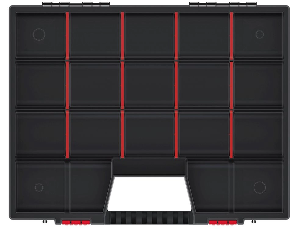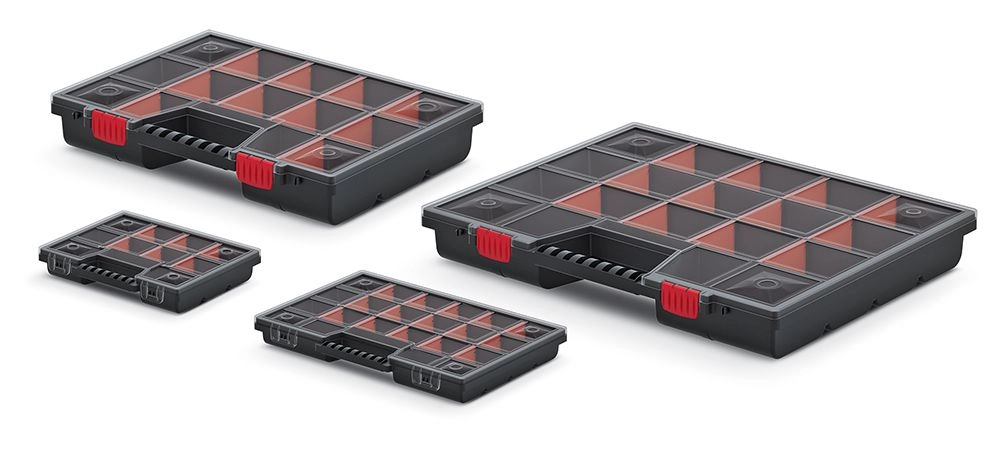 Hold orden i værksted, garage eller hjem med NOR-organisatoren, som takket være 18 fleksibelt justerbare rum kan tilpasses præcist til dine behov. Det gennemsigtige låg giver dig et øjeblikkeligt overblik over indholdet, så du altid hurtigt finder den rigtige del.