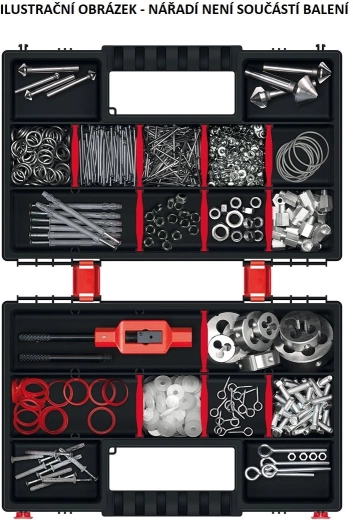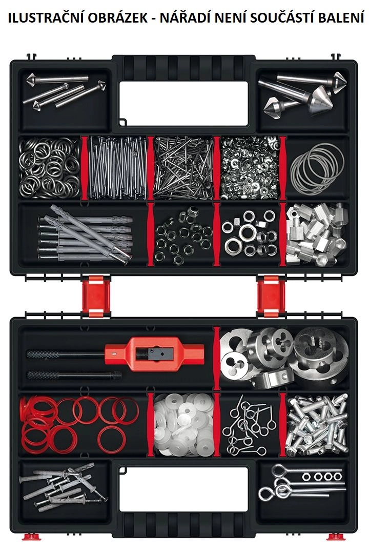 Den praktiske plastorganisator NORS DUO giver overskuelig opbevaring af små dele og pladsbesparelse ved at forbinde to separate bokse til én enhed. Den tilbyder aftagelige skillevægge for fleksibel inddeling, transparente låg af slagfast polymer for hurtig overblik og solide låse for sikker lukning. Ideel til gør‑det‑selv, håndværkere, værksteder og garager.