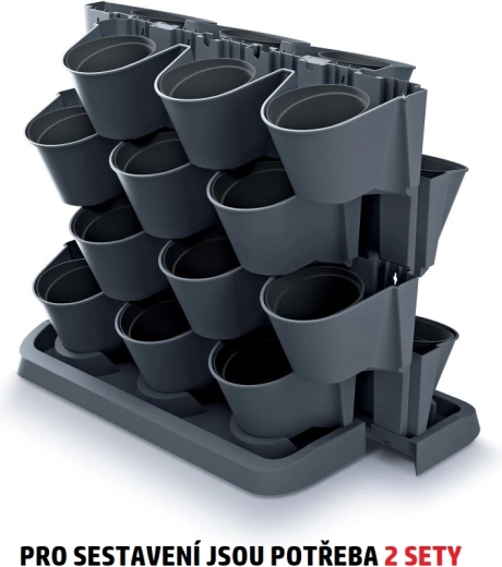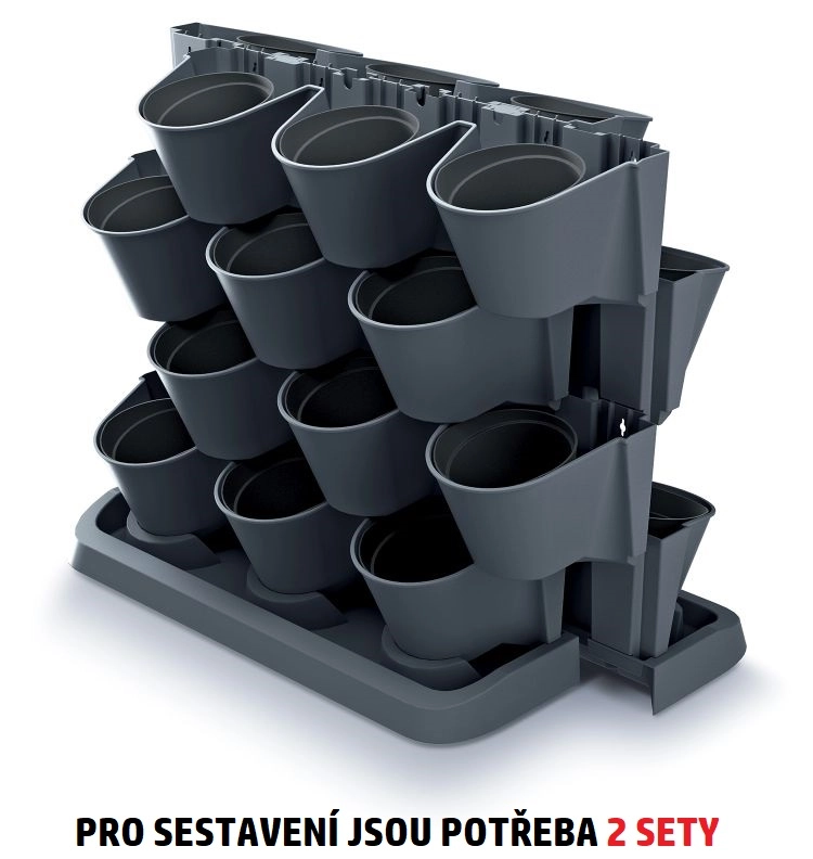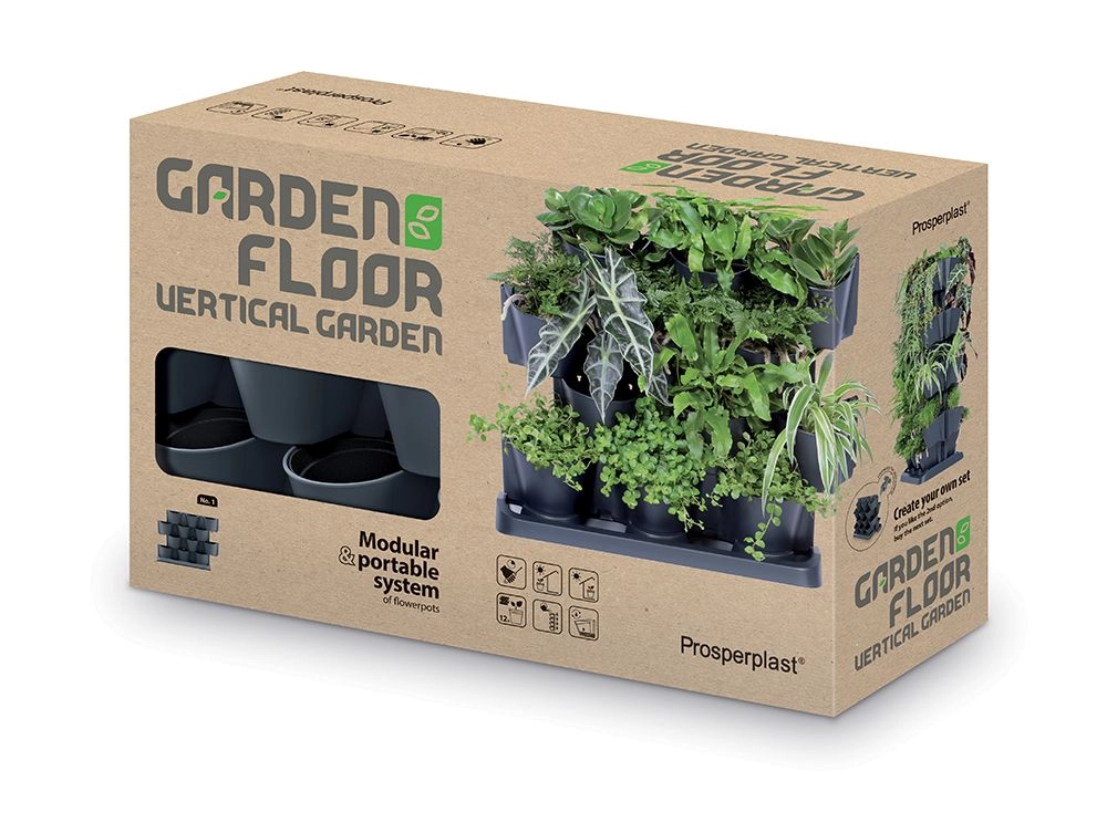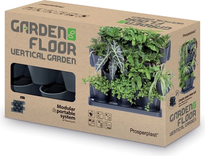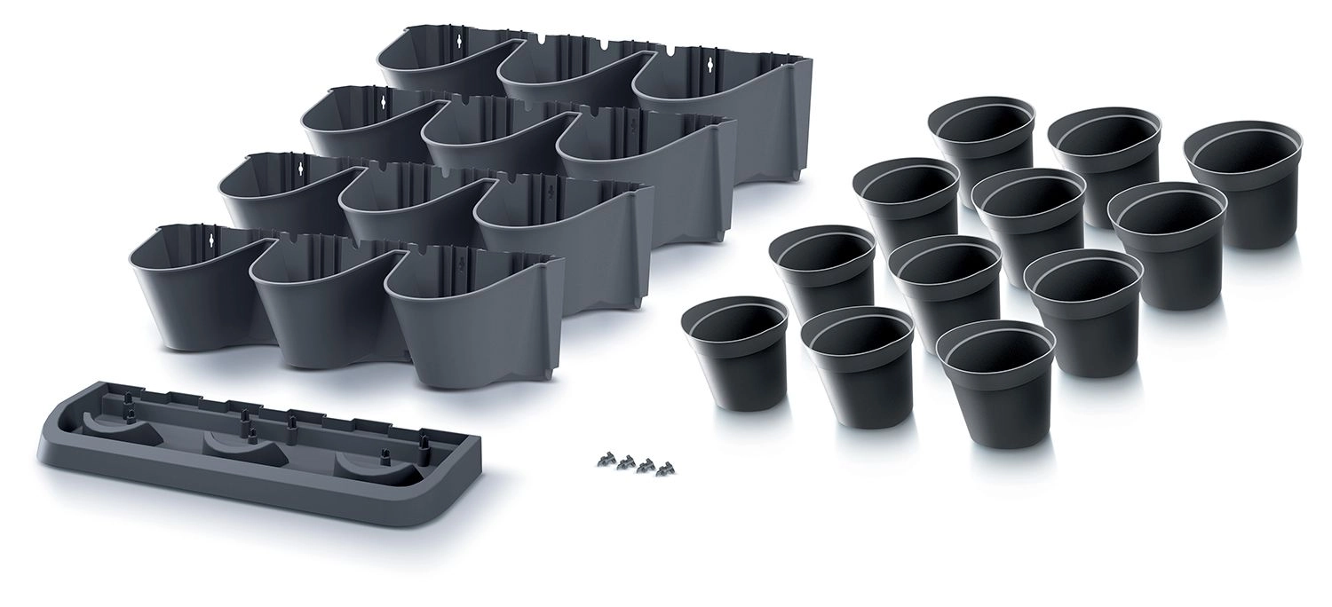Dette smarte sæt med vertikale plantekasser gør det muligt at dyrke flere planter på minimal plads. Takket være de stabelbare moduler og aftagelige inderkrukker kan du nemt arrangere krydderurter, sukkulenter og hængeplanter i en elegant grøn komposition. Det antracitfarvede design virker moderne og passer til altan, terrasse og indendørs.