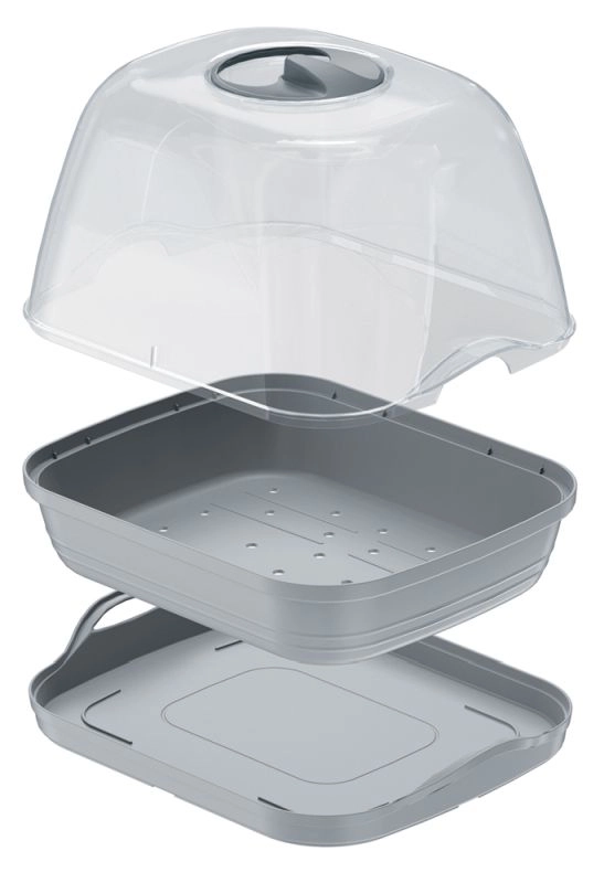 Praktisk forkultiveringsbakke med et robust polykarbonatlåg til hurtig forkultivering af planter på bord eller vindueskarm. Tilbyder højere transparens, bedre lysgennemtrængelighed og større slagfasthed end almindelige PP-låg, så kimplanterne får et ideelt mikroklima til sund vækst.