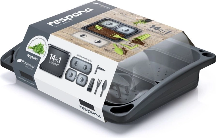 Forspirsæt til planter 14-i-1 Respana Table Top er en smart løsning til alle, der vil have friske krydderurter ved hånden og sunde småplanter klar til omplantning. Gennemsigtige låg med justerbare ventilationsåbninger holder fugt og temperatur stabile, forebygger kondens og beskytter mod skadedyr. Takket være bakken, hvor de enkelte dele er placeret, optager planterne nemt vand efter behov.