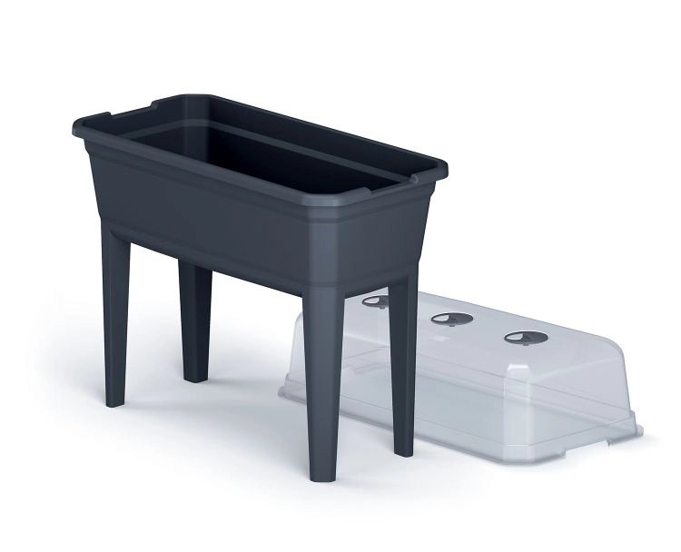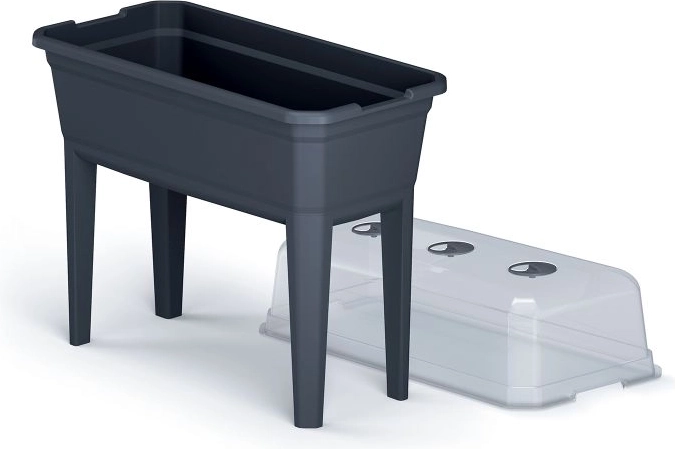 Oplev bekvem og stilfuld havebrug med den høje såkasse RESPANA Planter Ecoline Set. Kvalitetsplast, der er modstandsdygtig over for vejrpåvirkninger, er let at rengøre, og den moderne antracitfarve tager sig godt ud på enhver altan og terrasse. Det praktiske låg med ventilationsåbninger fremmer hurtigere spiring og sund vækst af småplanter, mens den forhøjede konstruktion skåner din ryg.