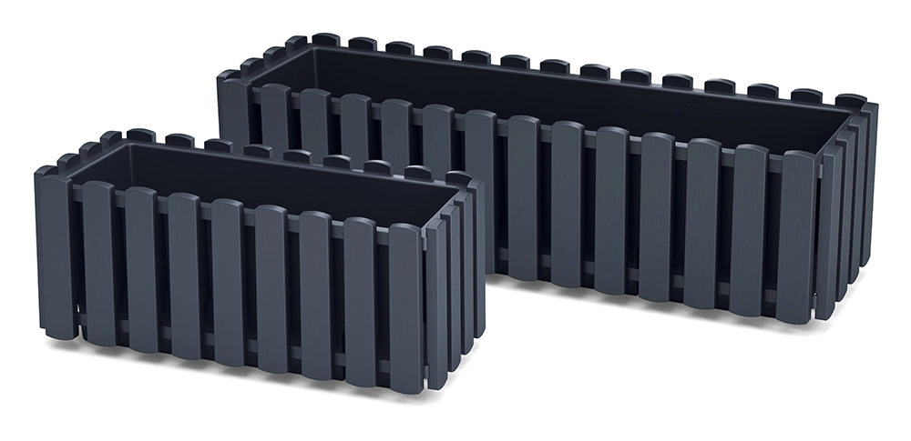 Skab en grøn oase på rækværket uden kompromiser. Denne blomsterkasse kombinerer et moderne udseende med et rustikt strejf takket være imitationen af trælameller. Den antracitgrå nuance passer nemt til ethvert udemiljø og virker ren og tidløs.