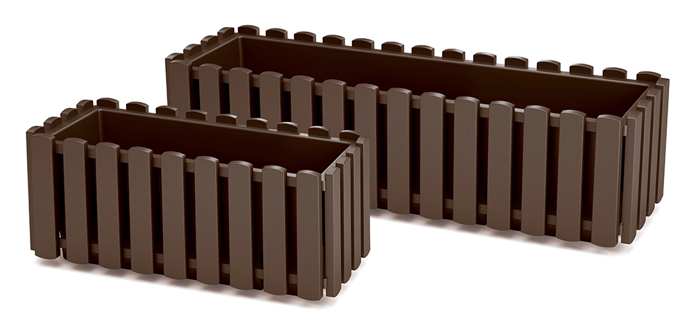Elegant altankasse til altan eller rækværk i brun farve med et design, der imiterer trælameller. Den er fremstillet af kvalitetsplast, som er modstandsdygtig over for UV-stråling og vejrpåvirkninger, så den bevarer farve og form i lang tid. Takket være de kompakte mål er den ideel til dyrkning af blomster, krydderurter og sæsonens grøntsager. Medfølgende metalbeslag til nem ophængning, lav vægt for nem håndtering og let vedligeholdelse sparer tid.