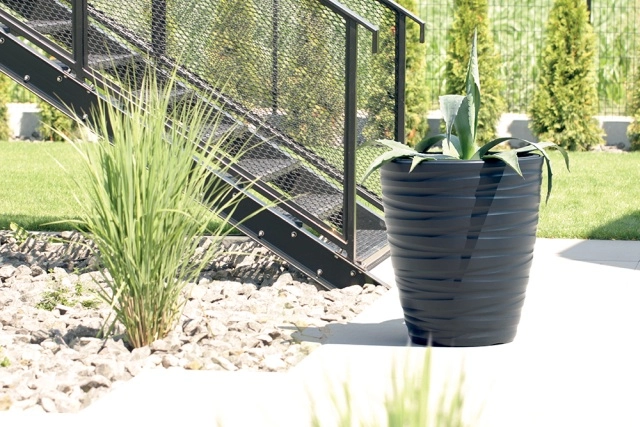 Stilfuld blomsterpotte med indsats MAZE i antracitfarve tilbyder moderne design, holdbar plast og nem pleje af planter. Takket være den indvendige indsats med effektiv dræning og et volumen på 16 l er den ideel til blomster og krydderurter på terrasse, altan og indendørs.