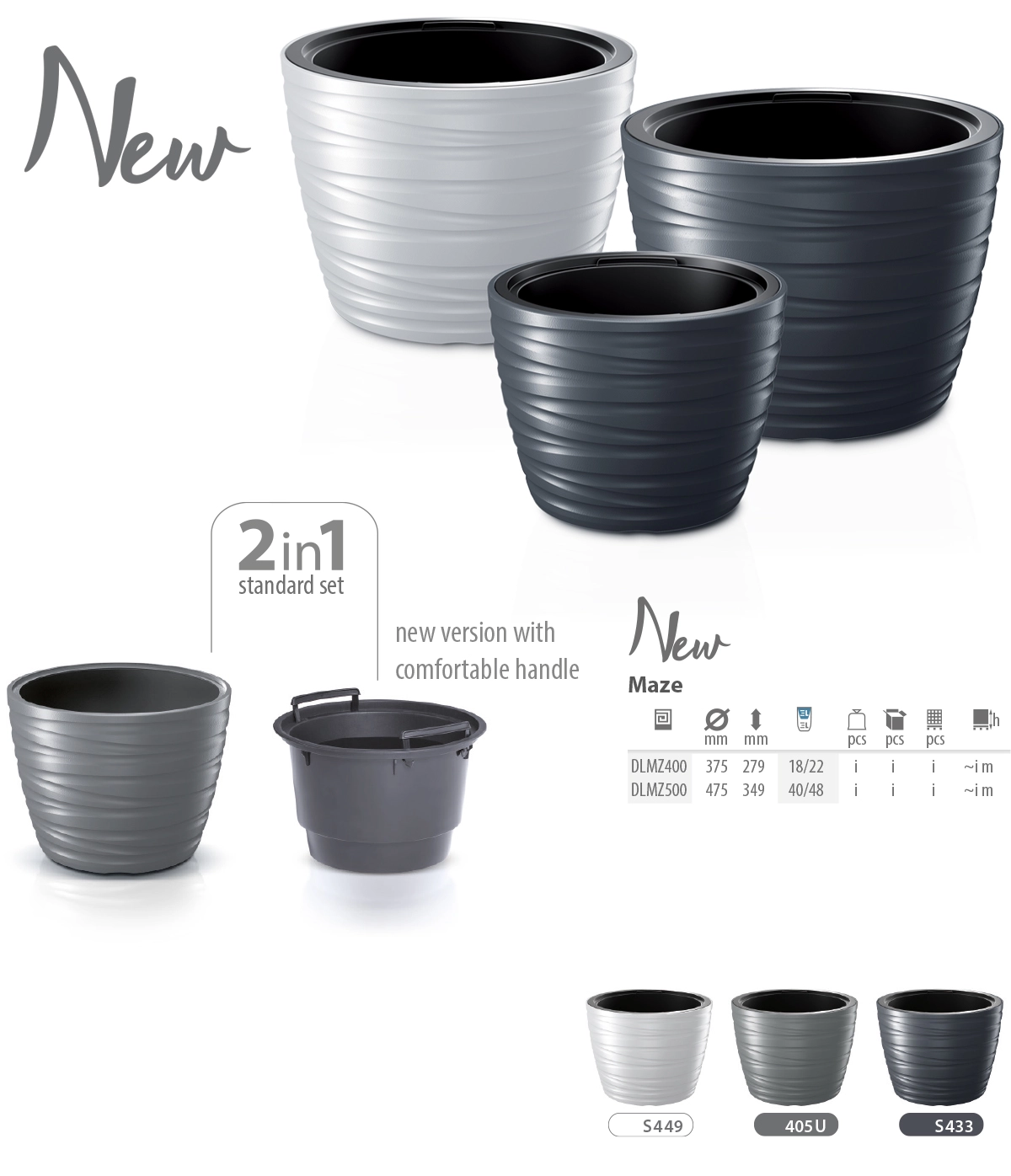 Den praktiske indre indsats reducerer forbruget af substrat, forenkler ompotning og bidrager til sund plantevækst ved effektiv bortledning af overskydende vand. En volumen på 48 l giver plads til mindre buske, urter og rigt blomstrende planter.