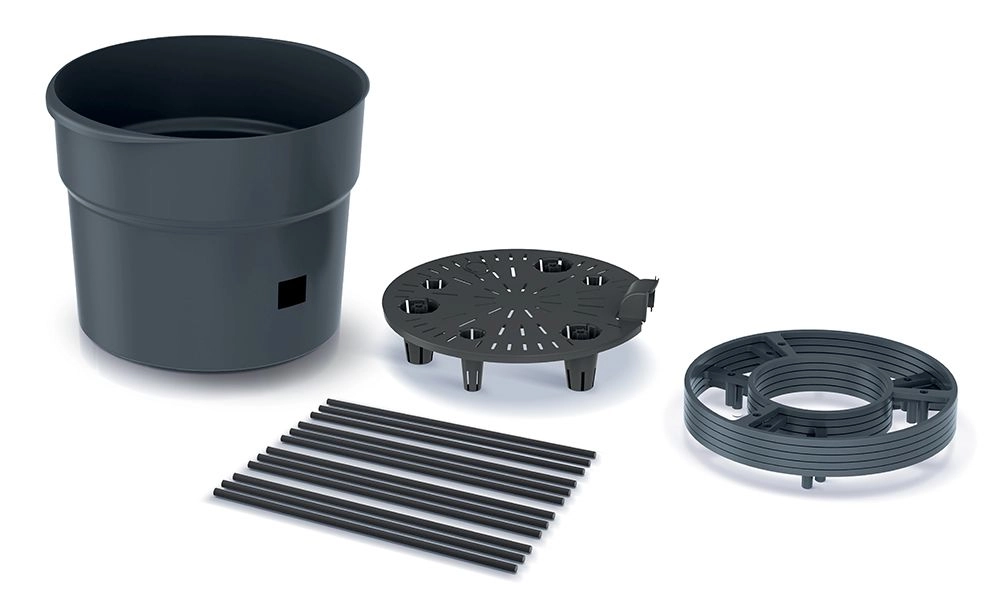 Let, holdbar plast og gennemtænkte indvendige elementer sikrer dræn, reducerer vandmætning og gør håndteringen nem selv på altanen.